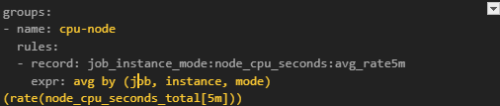 10. To record the time series resulting from this expression into a new metric called job_instance_mode:node_cpu_seconds:avg_rate5m, create a file with the following recording rule and save it as prometheus.rules.yml: